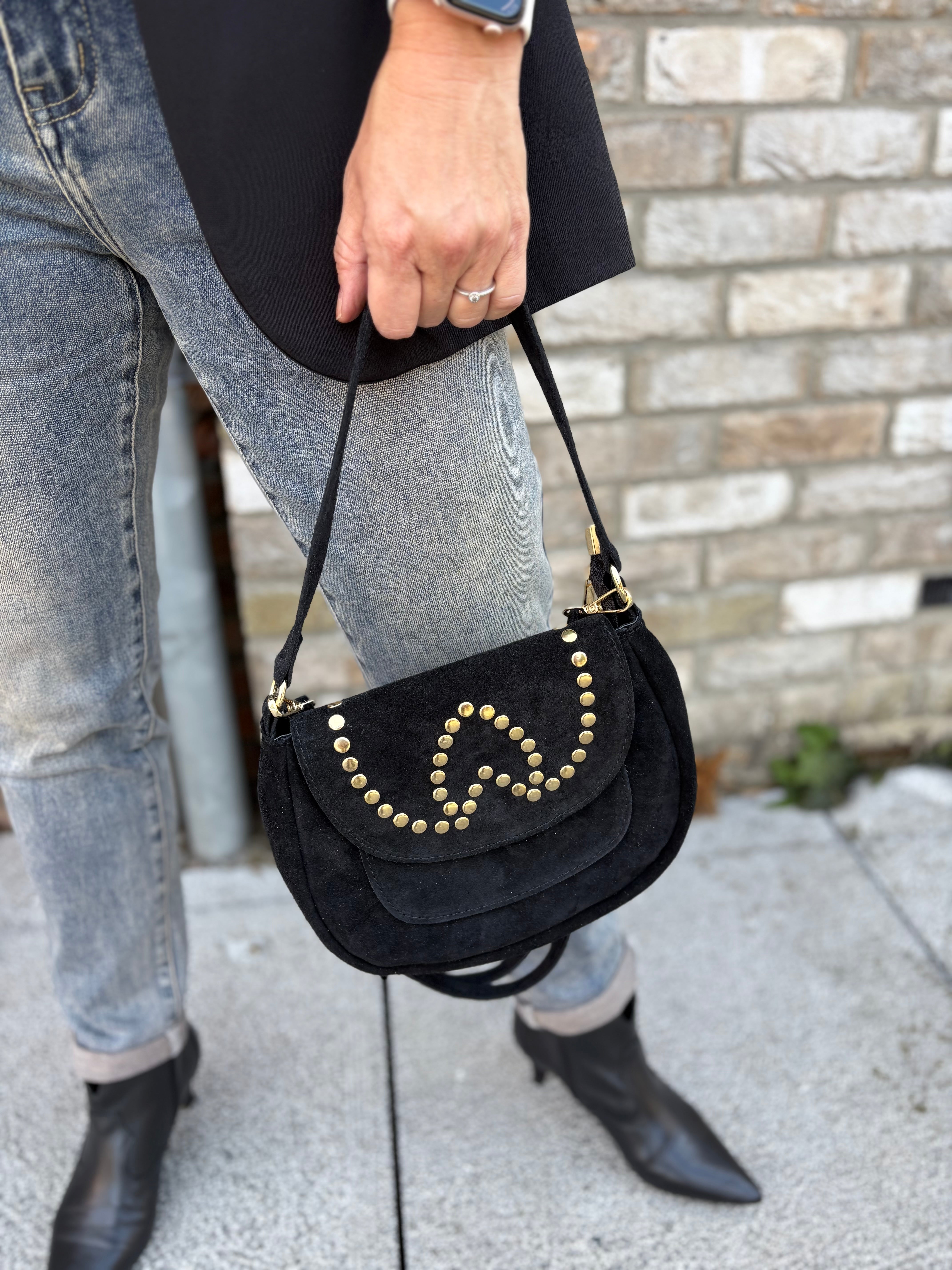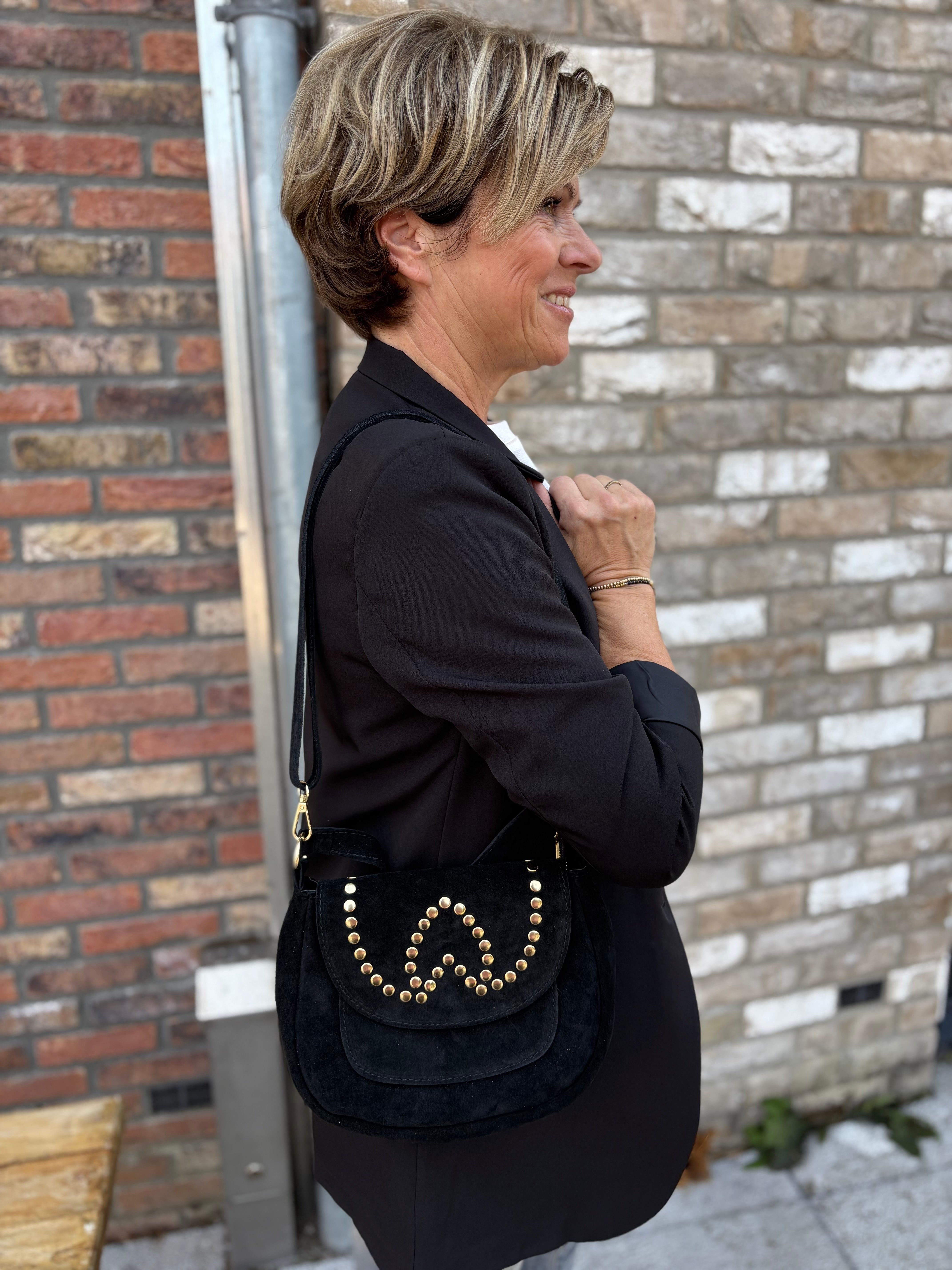 TASSEN LEER/SUEDE ZWART MET STUDS