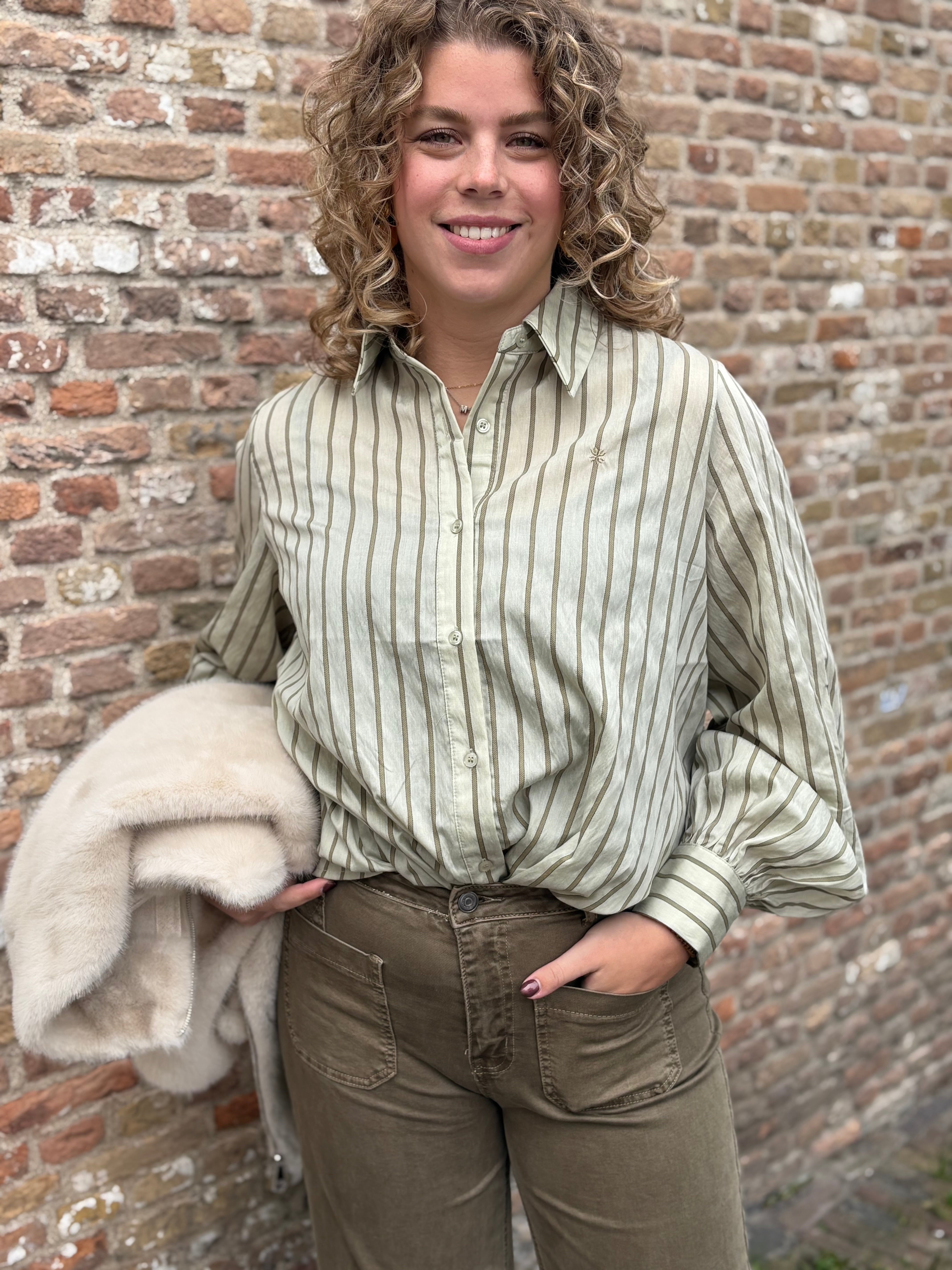 Voeg een vleugje groen toe aan je garderobe met deze prachtige C&S blouse in olive green. De rijke olijfgroene tint geeft de blouse een tijdloze, natuurlijke uitstraling die moeiteloos combineert met zowel casual als chique outfits.