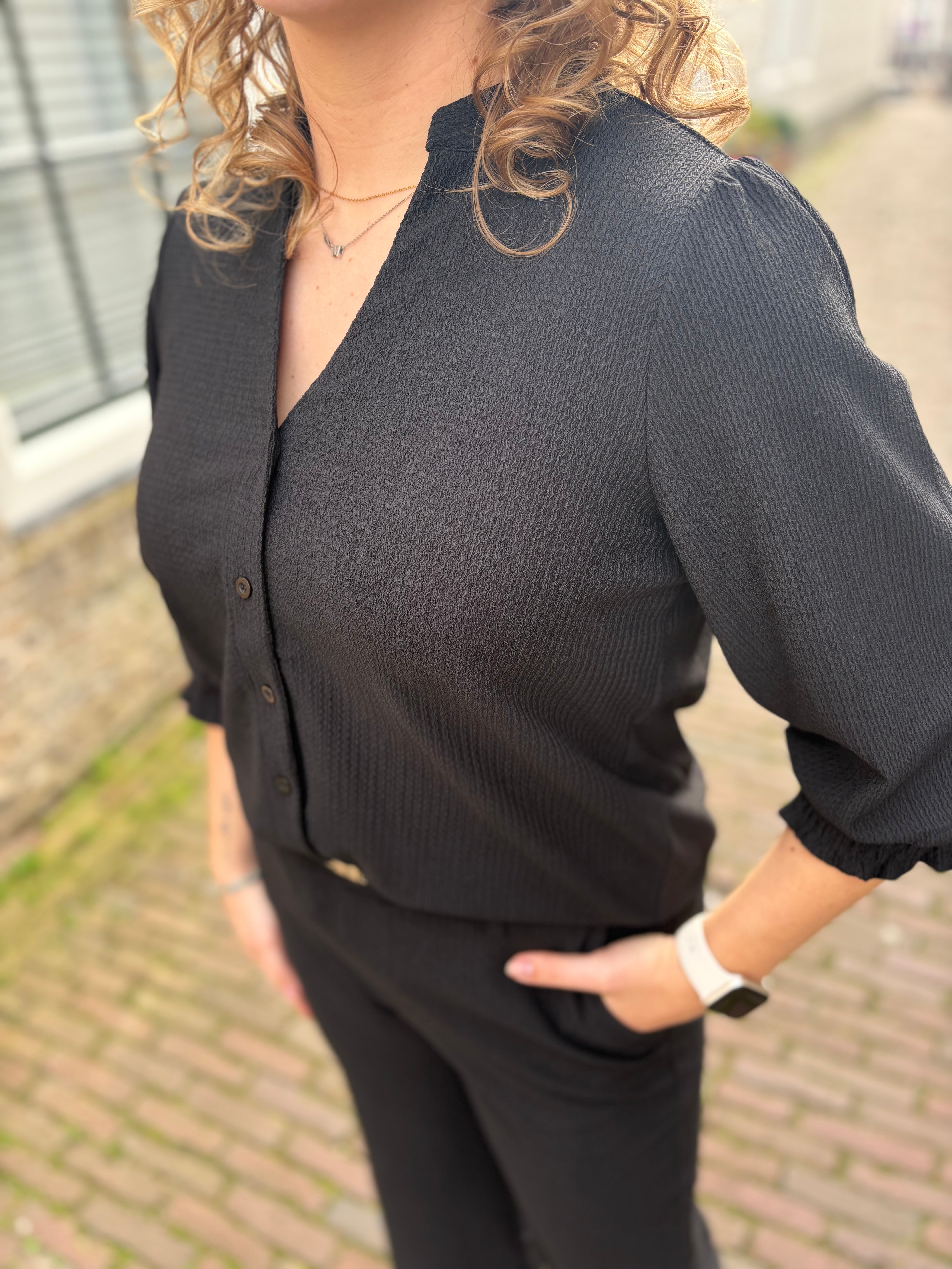 BLOUSE C&S ZWART DRIEKWART MOUW