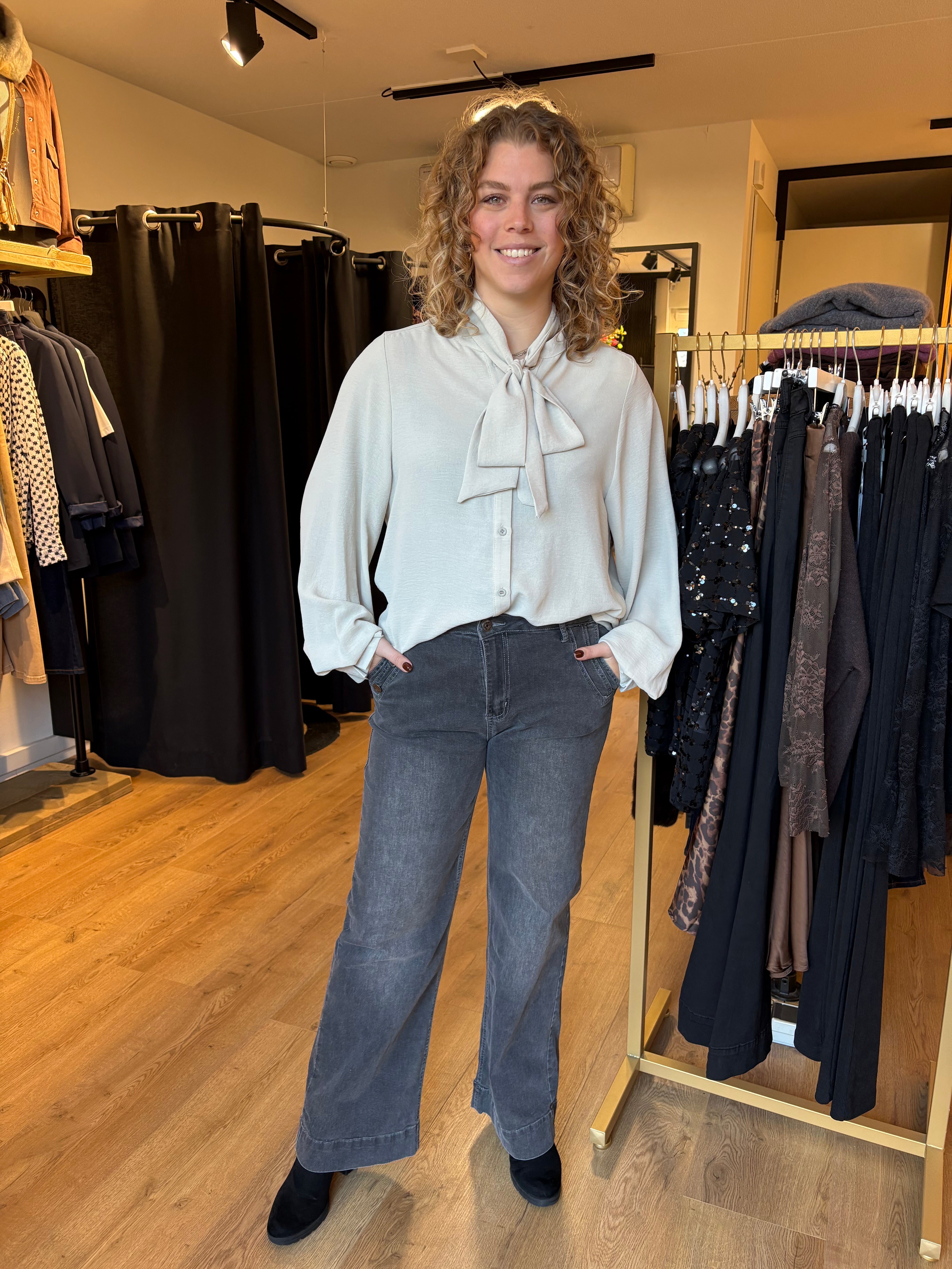 Deze stijlvolle wide leg jeans van C&S is een echte garderobe musthave. De antracietkleur geeft de broek een tijdloze, moderne look die moeiteloos met elke outfit te combineren is. Aan de zijkanten vind je twee schuine steekzakken, waarbij de rechter zak is afgewerkt met een subtiel knoopdetail voor een extra leuk detail.