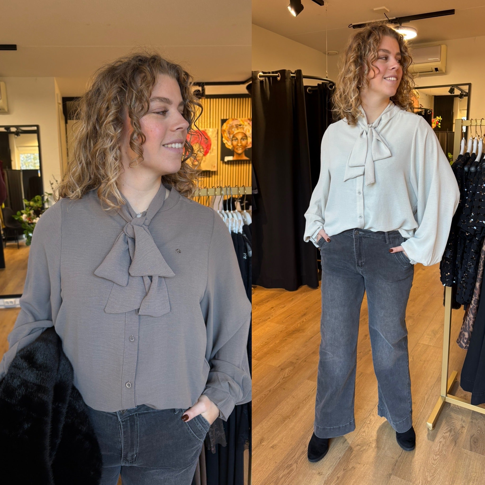 Deze elegante blouse van C&S is uitgevoerd in een chique zand en taupe tint en vormt de perfecte basis voor zowel een casual als een geklede look. De blouse heeft een ronde hals en is voorzien van een afneembaar strikdetail in de nek, waardoor je gemakkelijk varieert tussen een vrouwelijke, speelse uitstraling of een meer minimalistische stijl.